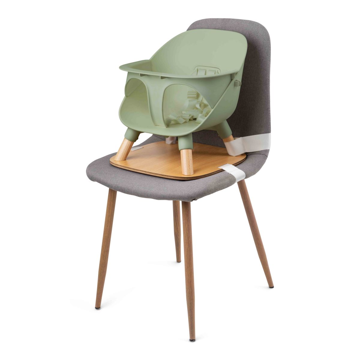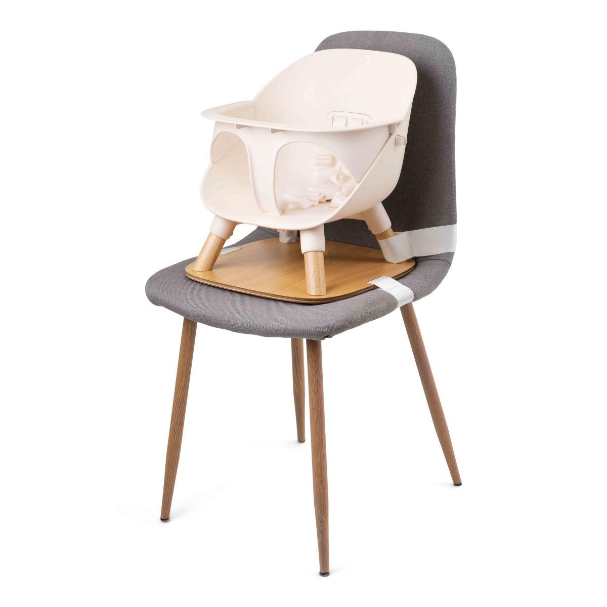 Inhalt: 1 vollständig montierter Kindersitz, bereit zur Befestigung auf einem Erwachsenenstuhl.